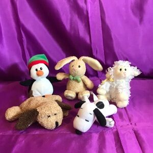 Lot of 5 small plush stuffed animals bunny Wendy's snoopy, penguin, dog, Ty lamb