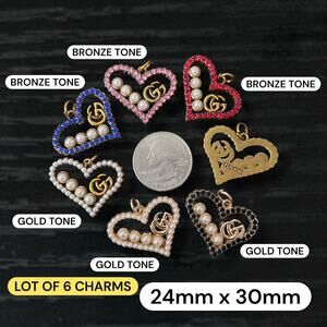 Lot of 6 GG Large Heart Zipper Pull Button Charms 24mm x 30mm