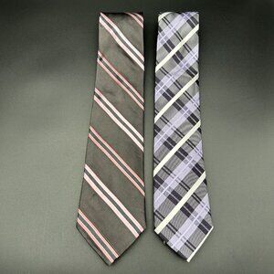 Lot of 6 Men's Neck Ties 55-58" Long 3" Wide Stripe Plaid Gray Purple Pink Black