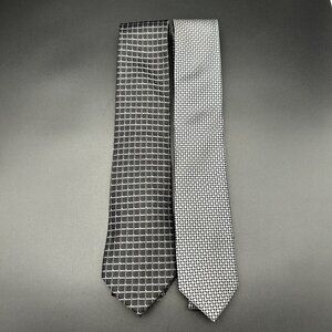 Excellent Condition. No rips, holes, stains, or odors. 4 - 100% Polyester. 1 - 100% Silk. 1 - No material tag. 1 - 55" long. 1 - 57" long. 4 - 58" long. All ties are between 3-3 3/4" wide. Brands include: The Gentry Shop, Bill Robinson, Express Design Studio, J. Ferrar, Classic Tie.