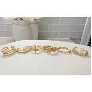 Lot of 6 New Stack Style Hot Fashion 18K Gold Plated Rings, Adjustable fit for most fingers