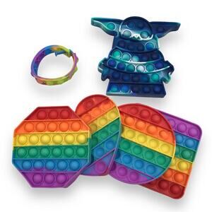 Lot of 6 POP IT Fidget Toy Yoda Geometric Rainbow Sensory Stress Relief Bubble