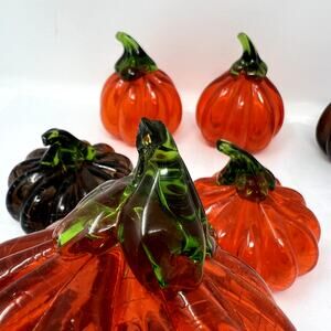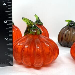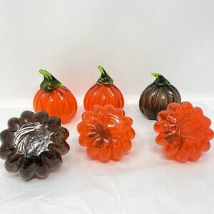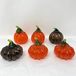 Lot of 6 Pumpkin blown Glass Halloween Fall Thanksgiving Decor Classic Elegant