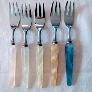 ✨ 5 Cake Forks – 6" long, matching Cataline pie flatware with colorful handles