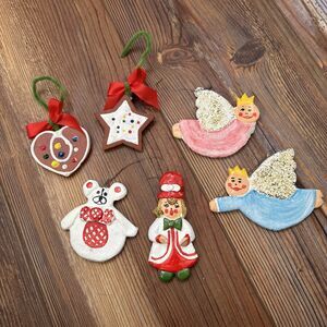 Lot of 6 Vintage And Handmade Clay/ Dough Like Ornaments Christmas Angels