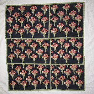 Lot of 6 Vintage April Cornell 2000 Black Rose Floral Bouquet Cotton Placemats