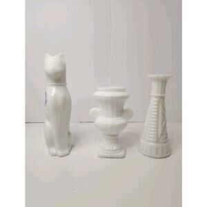 Lot of 6 Vintage Avon Milk Glass Perfume Bottles + Powder Dish Vanity Set
