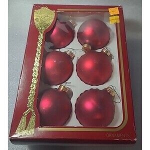 Lot of 6 Vintage Red Ball Christmas Ornaments The Victoria Collection glass.