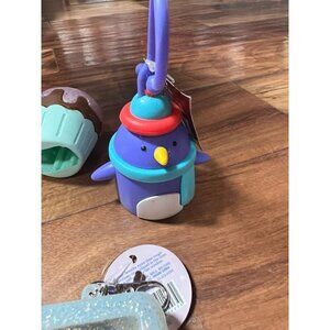 Lot of 6 hand sanitizer cases. Good vibes, cupcake, penguin, melon