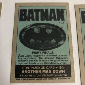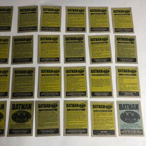 Lot of 62 1989 Topps Batman The Movie Trading & Sticker Cards. You will receive the exact cards shown. See photos for condition. Condition is worn/circulated. View all photos prior to purchasing. There may be some bent corners, wrinkles and gum spots/markings from age. Cards are ungraded and sold as is.
