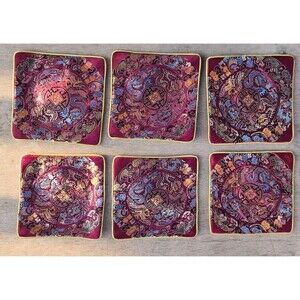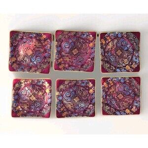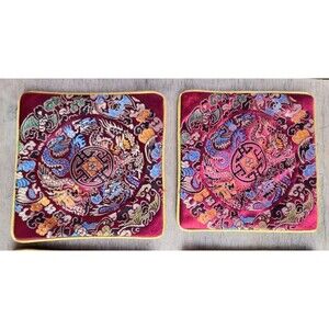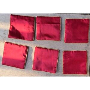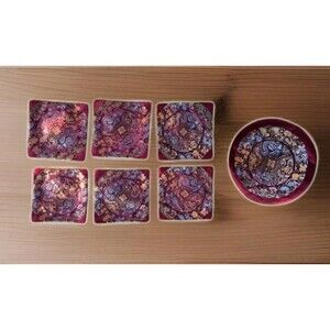 This lot of 7 colorful embroidered Oriental coasters includes 6 square coasters measuring 4.5" and 1 round coaster measuring 6.5". The coasters are made of cloth or fabric with intricate embroidered designs, featuring a multicolor pattern. Perfect for adding a touch of Asian flair to your home decor, these coasters are both practical and stylish for protecting surfaces in your kitchen, dining room, or bar area.