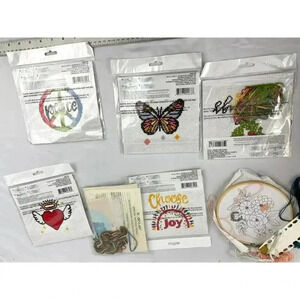 6 unopened kits and one started. Comes with hoop