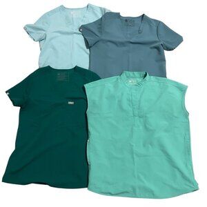 Lot of 7 FIGS Scrub Tops & Set Womens Small & X-Small Aqua Teal Green Blue