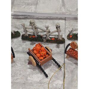 Lot of 7 Halloween Decor Lemax Bone Fence Set x3 Spiderweb Benches Wheelbarrow