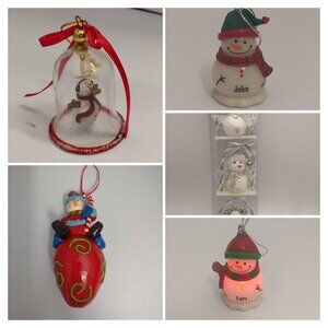Lot of 7 Holiday Snowmen Hanging Ornaments White and Multicolor