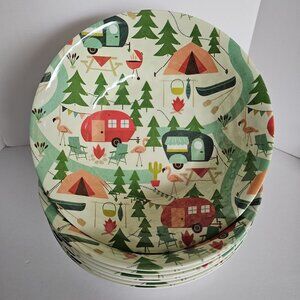 Lot of 7 Melamine 7.5" Bowls Camping Flamingo Tent RV Canoe Trees Grill Fire