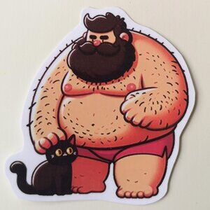 Lot of 7 Men Bear Dad Bod Holding Cats Stickers Cute Gay LGBT