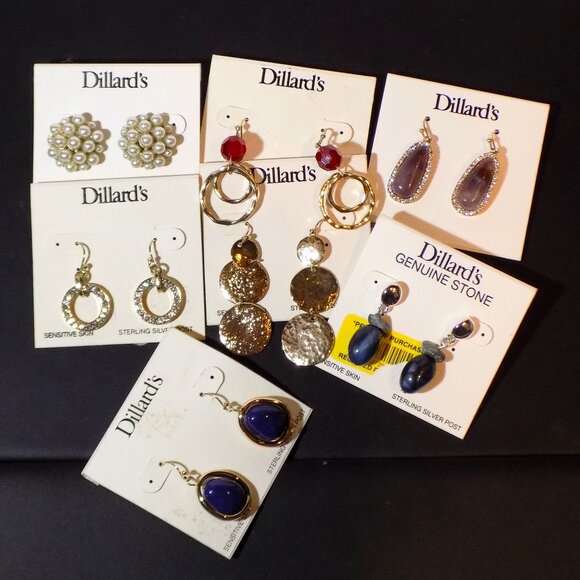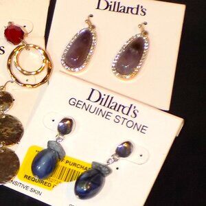 Lot of 7 New Pairs Dillard's Earrings Bundle. Sterling Earwires, Genuine Stone