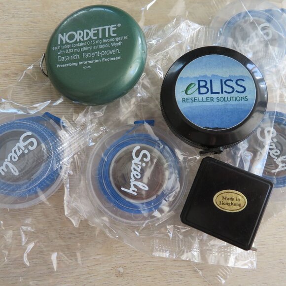 This lot includes seven body tape measures from various brands, offering diverse designs and compact portability for personal or professional measuring needs.