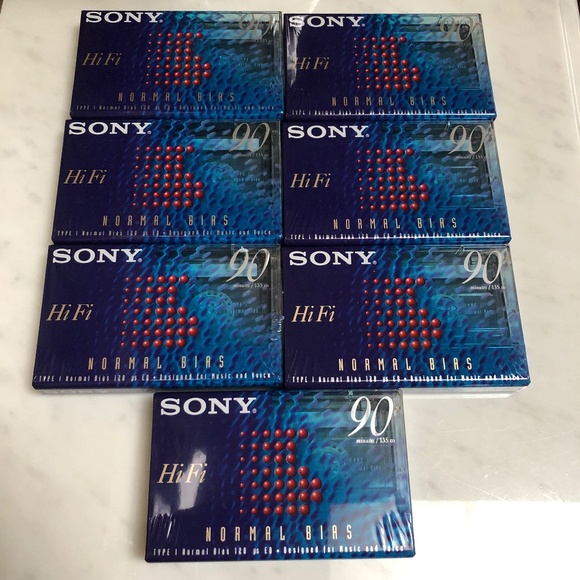 Lot of 7 Sony Hi-Fi Type I Normal Bias 90 Minutes Blank Cassette Tapes SEALED. Brand New.