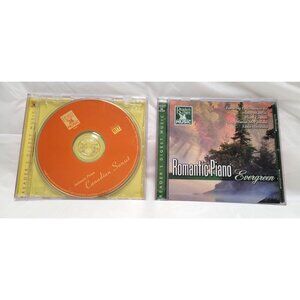 We haven't tested these CDs but we believe all are instrumental music. Cases show scratches and wear, consistent with age and usage. The plastic middle inside of Evergreen CD is broken causing the CD to be loose in the case. The Canadian Sunset CD is missing the front insert. CDs have scratches but we don't believe that will affect the playing quality.