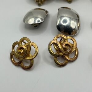 Lot of 7 Vintage Clip-On Earrings Gold Silver Pearl Black Statement Jewelry