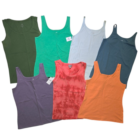 Elevate your wardrobe with this lot of seven women's J. JILL tank tops, perfect for any occasion. Made with 100% cotton, these tanks are not only soft and comfortable but also durable for everyday wear. The variety of colors - green, purple, orange, and blue - allows you to effortlessly mix and match with different outfits.