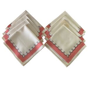 Lot of 8 Cloth Napkins Ivory Pink Black 16" x 15" Cotton Dining Vintage
