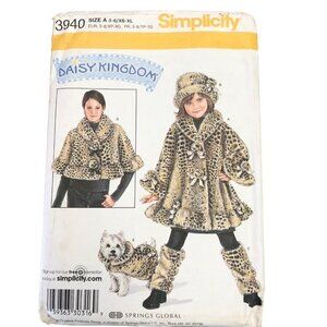 -- #3940 Simplicity -- Daisy Kingdom -- Coat, Hat, Leg Warmers, Capelet plus Dog coat in 3 Sizes -- Size 3 to 8