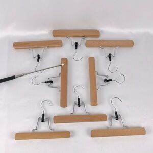Lot of 8 Natural Wood Slack Skirt Pants Hangers with Metal Arm Clamps