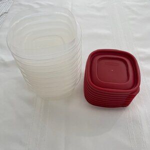 Lot of 8 RUBBERMAID Square STORAGE CONTAINERS 7J56 and 7J57 with red lids