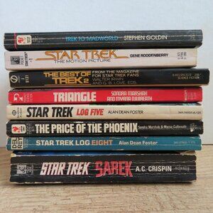 A collection of 8 vintage Star Trek paperback books featuring characters from the Original Series. Various authors. The books range in condition from Good to Very Good, with varying degrees of cover wear. See photos for condition. You will receive all books pictured. They include: