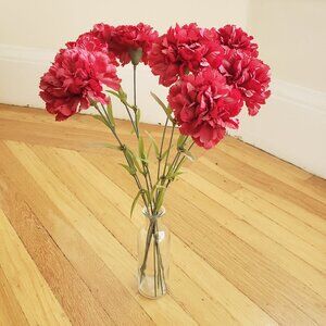 Lot of 9 Artificial single stem Red Carnations fake flowers