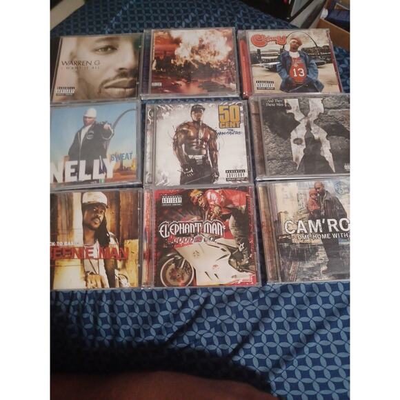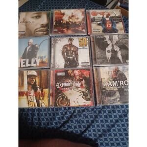 This lot of 9 Rap Hip Hop CDs includes albums by popular artists like Nelly, 50 Cent, DMX, Warren G, and Busta Rhymes, among others. The CDs are in various jewel cases and feature a mix of English-language tracks from the 90s and 2000s era. With a style leaning towards Hip-Hop and Gangsta Rap, this collection offers a diverse range of music within the Hip-Hop & Soul and Rap & Hip-Hop genres. Perfect for casual listeners looking to enjoy a selection of iconic hits from legendary artists.