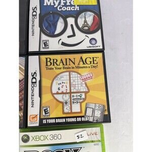 Dive into a diverse collection of gaming experiences with this lot of 9 Xbox 360 and DS games. Featuring acclaimed titles like Resident Evil and Fable III, along with Rock Band, this selection offers something for enthusiasts of action, horror, role-playing, and music gaming.