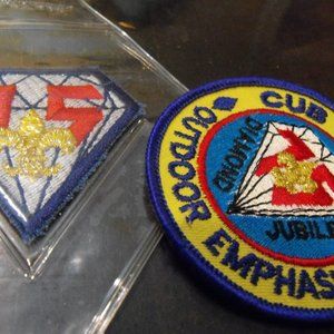 A lot of vintage boy scout memorabilia - includes 75 year patch, cub scout outdoor emphasis patch, 3 neckerchief clips, 2 lapel pins, honor unit 1982 patch, honor unit 1983 patch, honor unit 1984 patch, arrow of light award patch, 4 year pin, Webelo badge, bear cub scout badge and bear pin, Webelo's activity badge - 2 year pin, cub scout pin, bobcat pin, horse pin, and 2 year pin