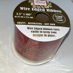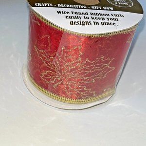 Whimsical Christmas wired edge ribbon red with gold