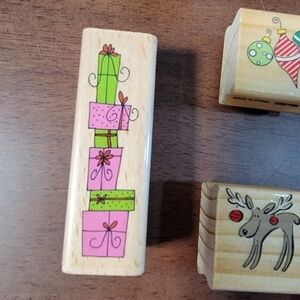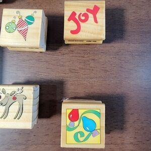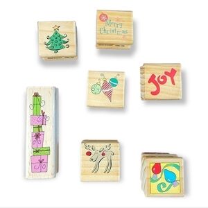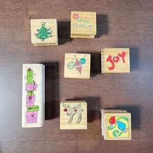 Lot of 7 wooden block rubber stampsin Christmas themes.