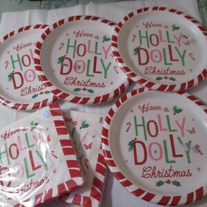 Lot of DG Dolly Parton Paper Plates & Napkins Christmas Holly Dolly NEW