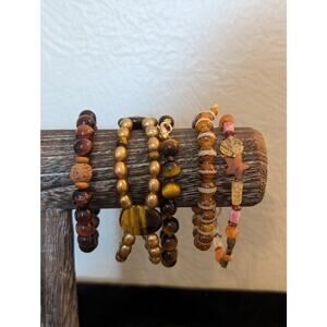 Lot of Five Brown Stone Theme Bracelets. Tiger's Eye, Jasper, and more. Pre-owned, this set of bracelets is in excellent condition. Different sizes. Some are stretch and some have clasps.