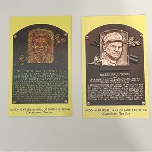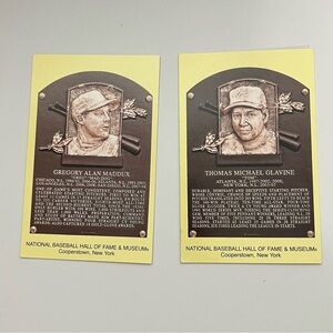 Four brand new postcards! Pieces of history from the National Baseball Hall of Fame and Museum in Cooperstown, New York. Tom Glavine, Greg Maddux, Willie Mays, and Joe Torres. Great gift for a baseball collector or historian.