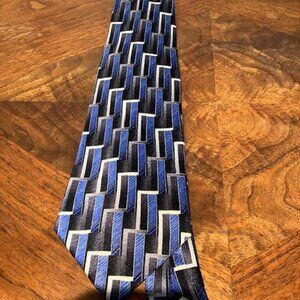 Blue Geometric: Pierre Cardin 100% Silk