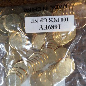 Contains 7 gld color 16" necklaces, 30 gold color 2" extenders, 1 gld plt 7.5" bracelet blank, 5 gld color chain 7.5" bracelets, apxy 100 gp ear nuts, apxy 100 gp earring backs, 6 gp earring wires, 3 gld color horse charms, apy 120 gp horse head charms, apxy 120 1/8" gold drops, apxy 90 gp jump rings, 10 gp bezels, apxy 90 1/2" gp drops, apxy 25 gold color rhinestone drops. (Quantity numbers on bags in pictures not accurate...)