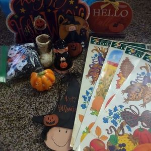 fall and Halloween decor, window clings, tealignt candle holders garland, etc
