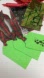 - 3 Bright leopard green tags: 1 Merry Christmas in print font with red plaid ribbon, 1 Merry Christmas in cursive font and leopard tree with star with red plaid ribbon, 1 leopard tree with star with red plaid ribbon. Back is plain green for message writing.