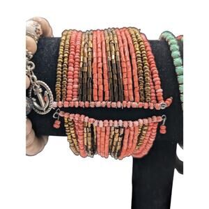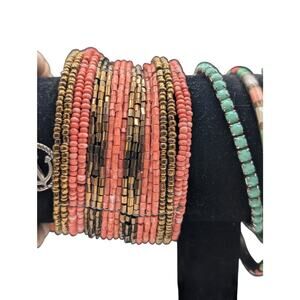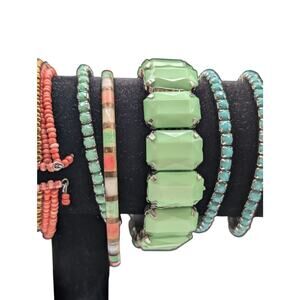 Lot of Nine Mint Coral Bracelets. Pre-owned, this lot of bracelets is in various conditions and being sold as is (wearable to excellent). The items chosen for my lots are items I previously had set aside to sell but decided to lot up due to a high volume of inventory. Because they are lotted up and at a reduced price, I have not taken the time to clean them or closely inspect them.