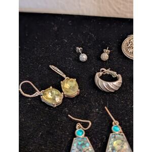 Lot of Nine Pair Silver Tone Pierced Earrings. Pre-owned, these earrings are in various conditions and being sold as is.