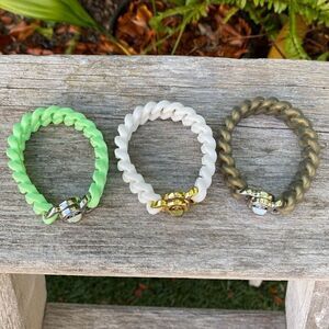 Lot of Three 3 Rustic Cuff Mint/White/Olive Silicone Wrap Braided Bracelets. EUC
