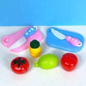 Lot of Toy Pretend Play Sliceable Food Plastic Toy Knives & Cutting Boards