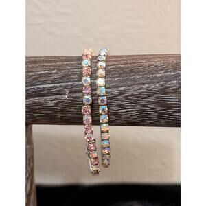 Lot of Two Vintage AB Crystal Stretch Silver Tone Bracelets. Pre-owned, these bracelets are in excellent vintage condition.